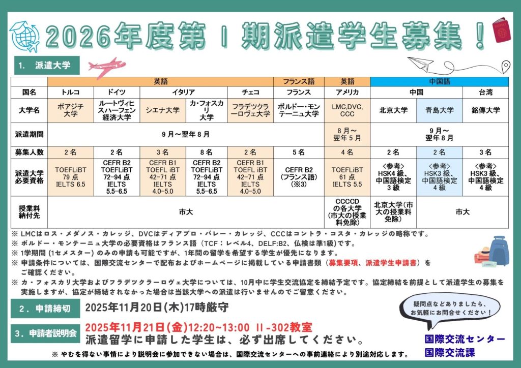 2026年度第I期派遣學生招募!