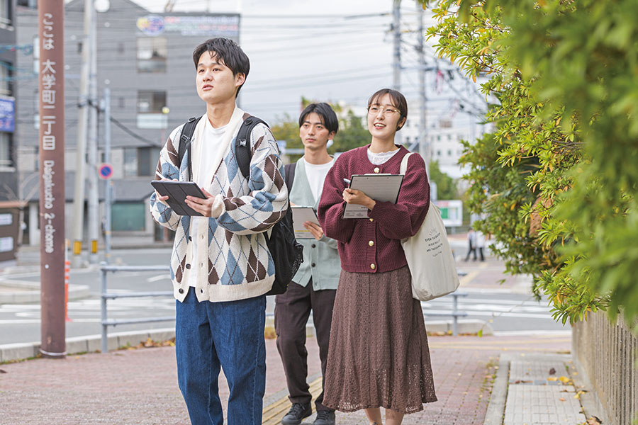 從高中時代開始,我就對如何解決“商店街的快門街化”等地域課題很感興趣。進入下關市立大學公共管理系是因為可以通過實地工作等來探究解決地區課題的對策。實際上,入學後可以一邊關注公共事項一邊進行學習,加深知識。像“非營利組織論”那樣,除了以公共組織和活動為焦點的授課之外,還有很多與地區相關的授課,我自己可以一邊夾雜地域課題、地域政策等具體事例一邊詳細學習,非常有意義。