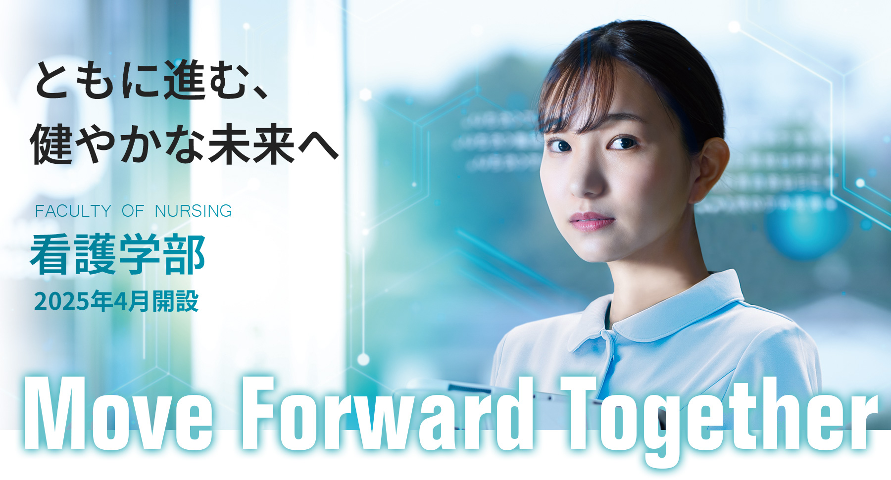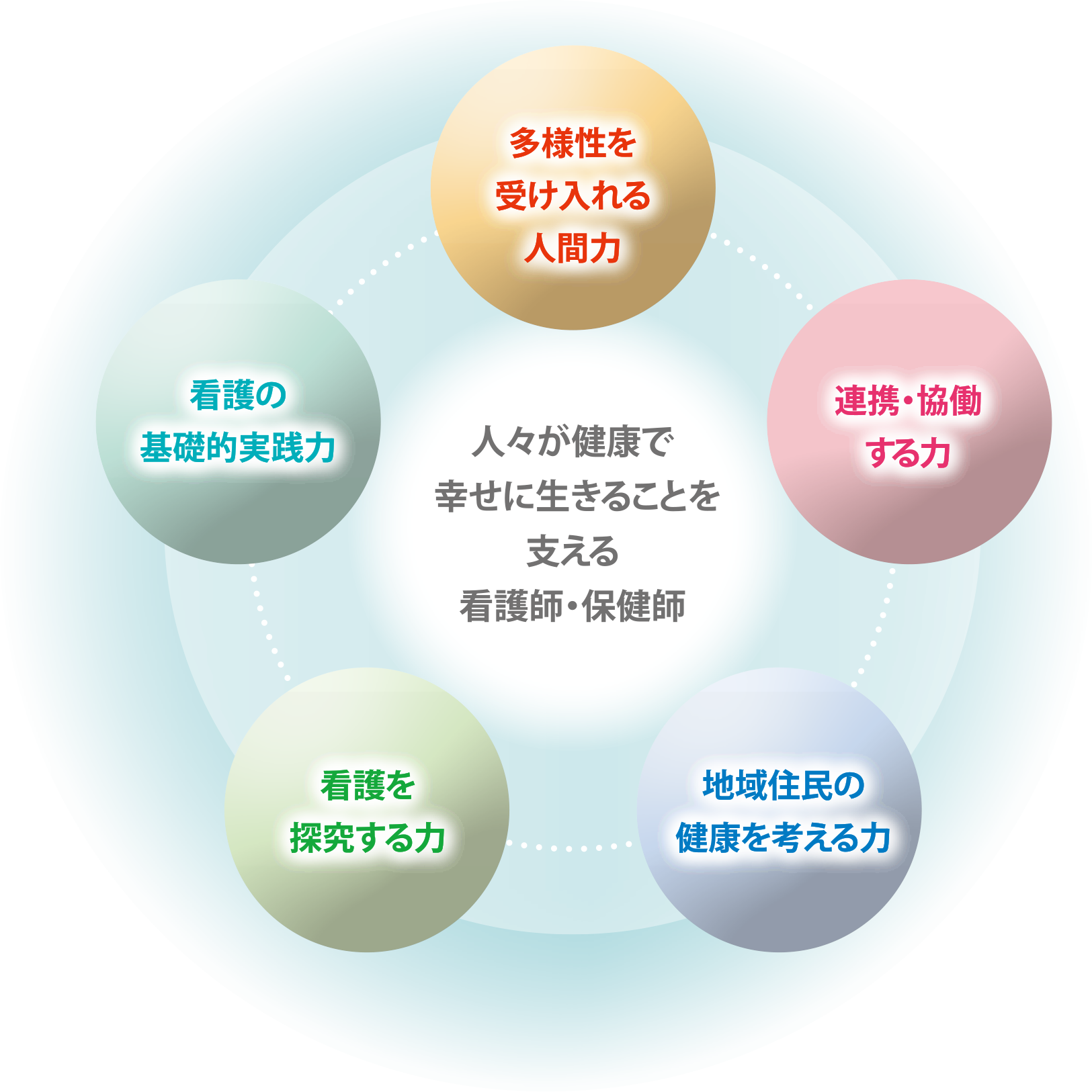 正因為是變化顯著不能預測未來的時代,所以才需要能夠為發現和改善人們的健康課題而行動的看護人才。下關市立大學不僅是醫療機關和療養設施,在人生活的場所,培養生活在下關、關門地區的人們像那個人一樣生活,支持健康幸福生活的看護專業人員。