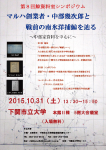 第8屆鯨魚資料室研討會“馬哈創業者・中部幾次郎與戰前的南冰洋捕鯨~以中部家資料為中心~”將如下舉行。因為是免費入場,所以期待著很多人的出席。