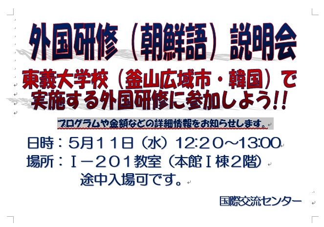 這是在南韓東義大學校舉行的今年夏天外國研修B(朝鲜語)的說明會。