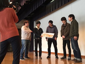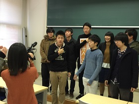 2017年1月19日(週四),本校NHK山口放送局“資訊維新山口”標題呼叫的拍攝,教職課程的3年級學生,軟式棒球部,無伴奏社團“A cappe*love”,大學祭執行委員會4個小組參加了拍攝。