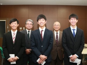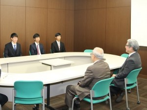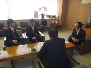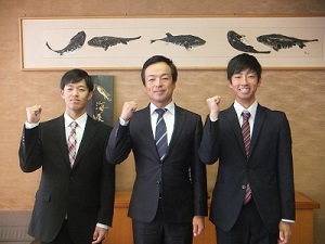 準硬式棒球部的2名選手於11月20日(星期一)拜訪了下關市長,並報告了他們將參加全國大賽。男子排球部因為上課的關係沒能直接報告,但是本校職員代替報告了。