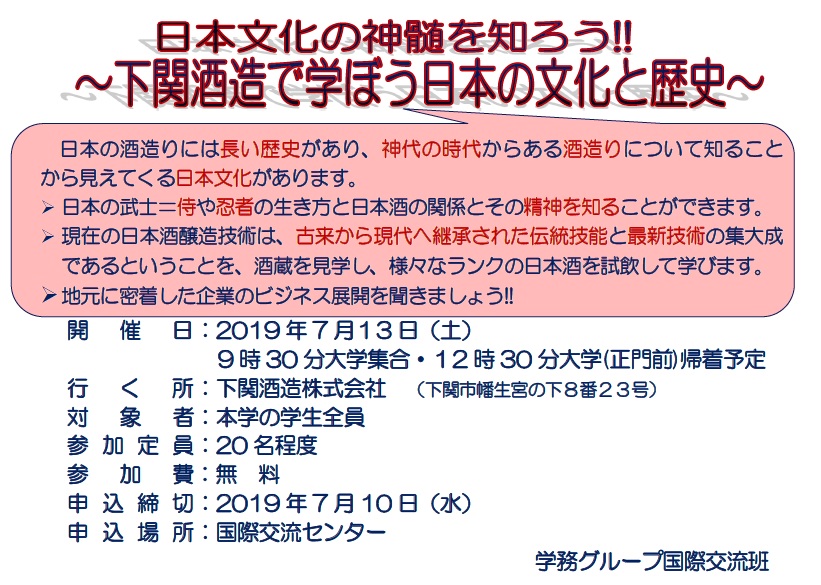 2019年度第一回,通過日本的釀酒學習日本的歷史、文化和商務發展。