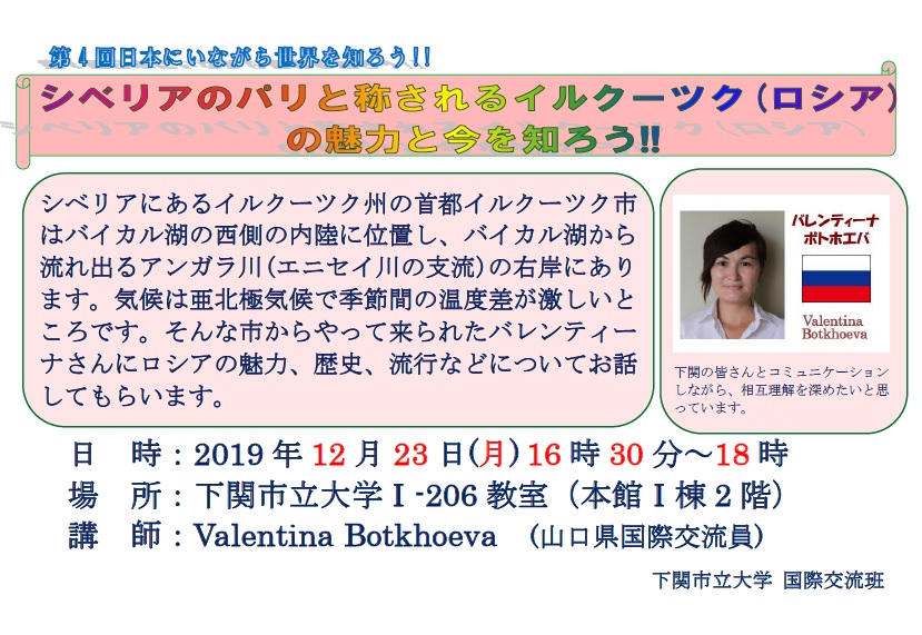 【講師】 Valentina Botkhoeva(山口縣國際交流員)