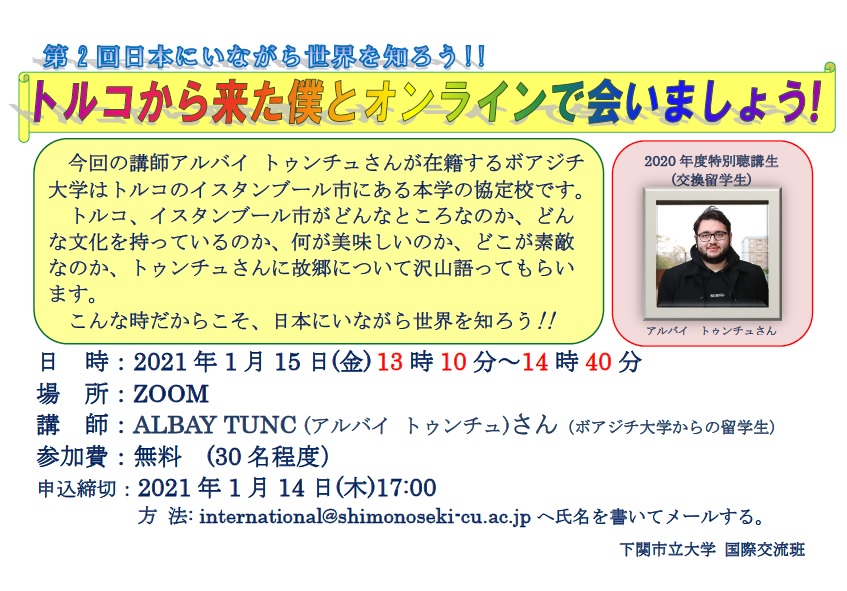 - 第2回在日本了解世界吧!讓我們線上與來自土耳其的我見面吧!舉辦~。