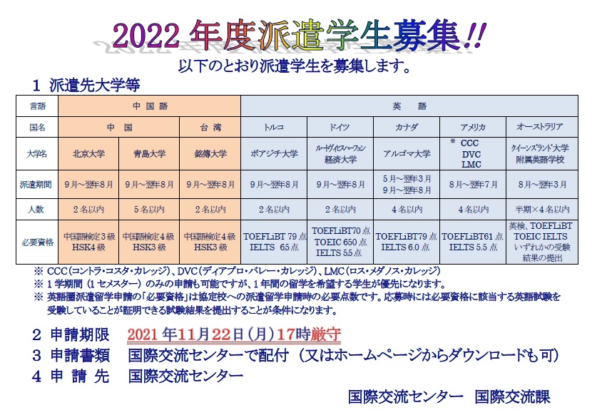 #國際交流【國際交流中心】招募2022年度第一期派遣學生