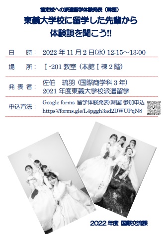 向南韓派遣留學或對南韓有興趣的學生請參加。