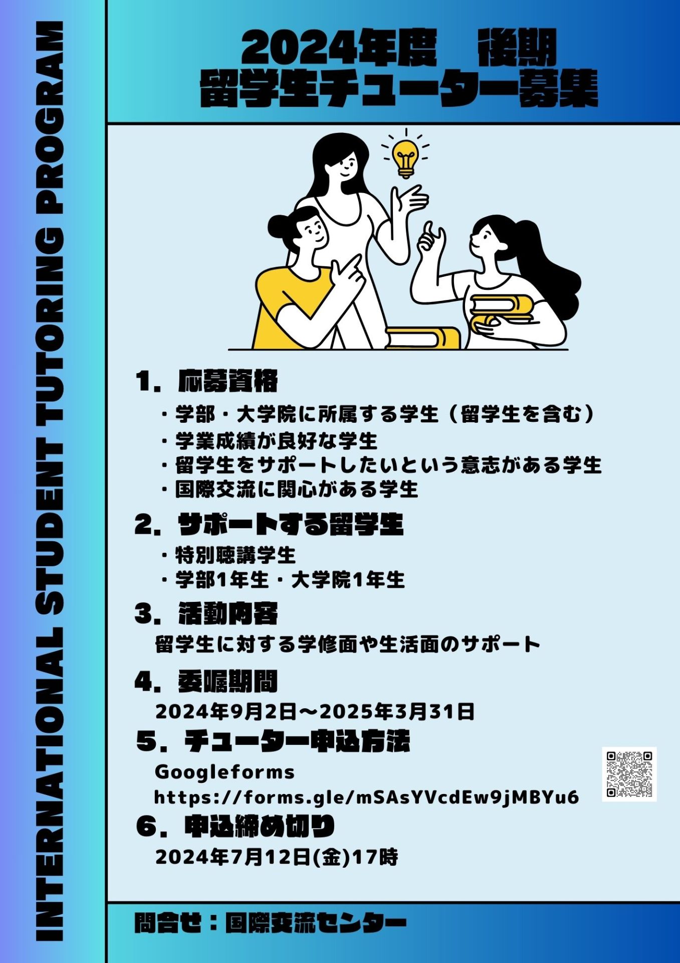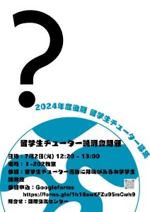 2024年度後期留學生指導員說明會參加申請在這裡(截止7月1日)