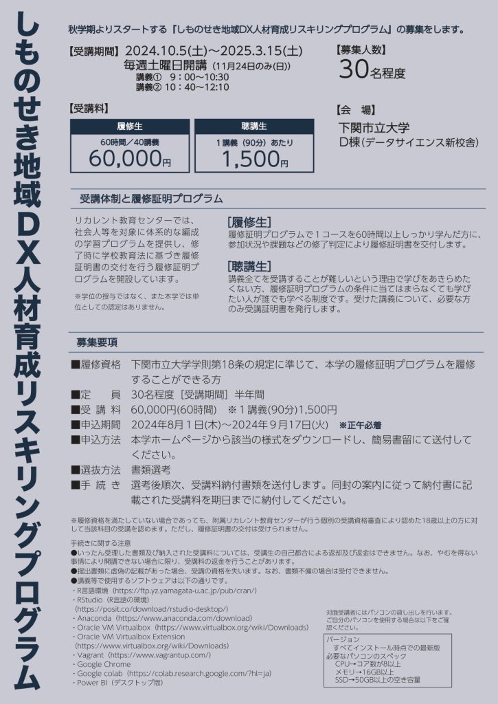 募集履修證明程序「し物咳嗽地域DX人才培養聽力程序」。