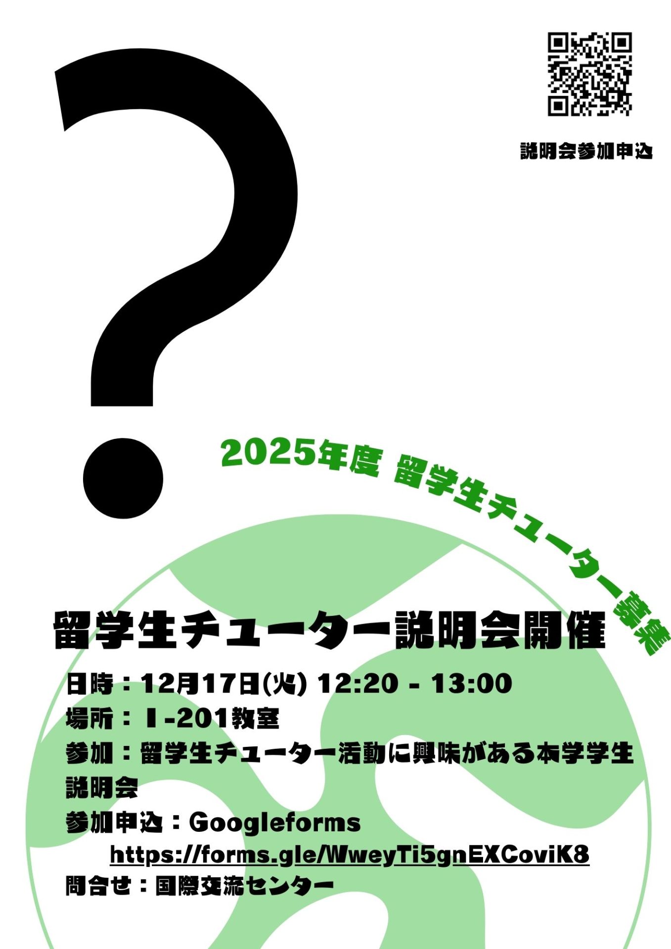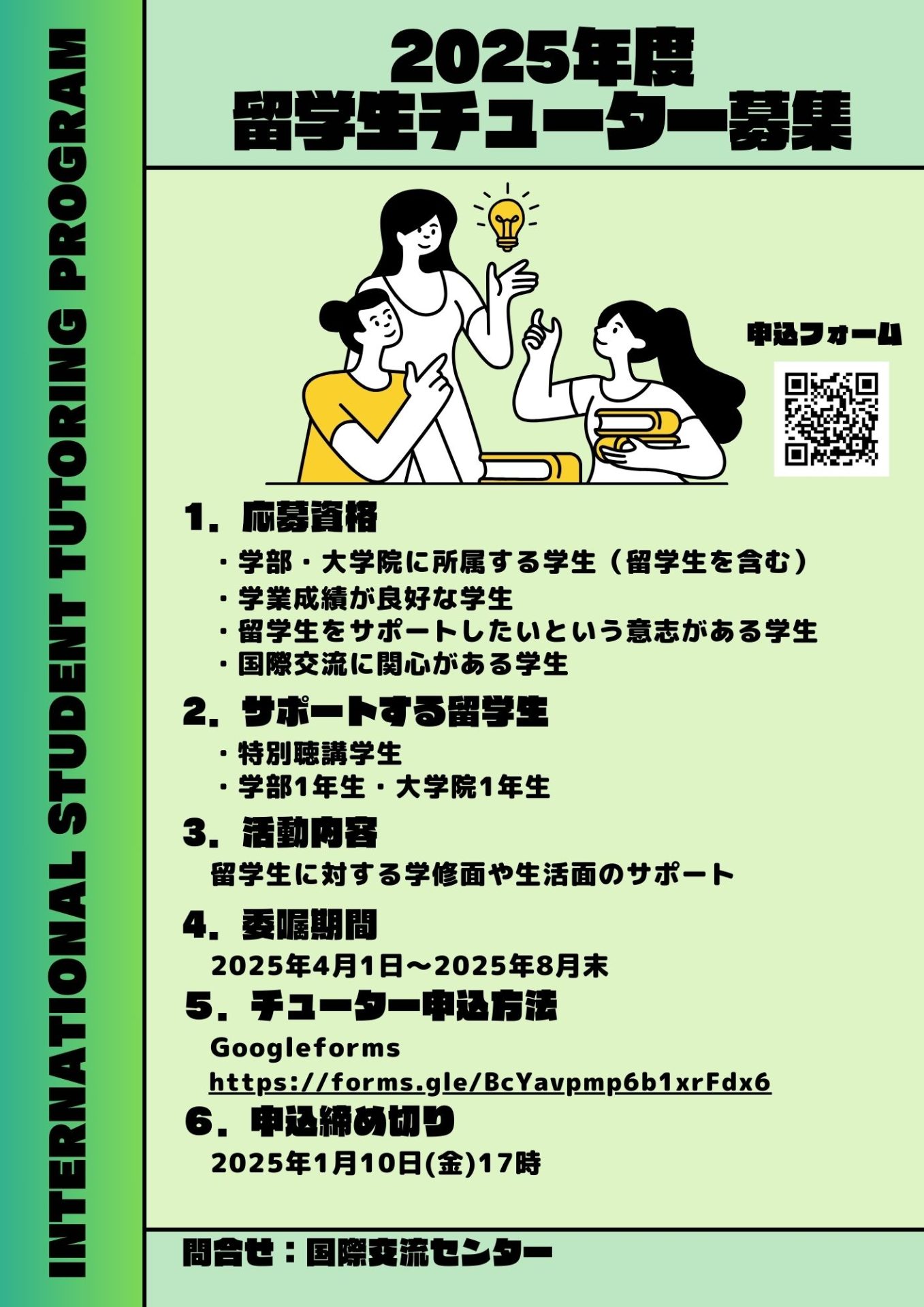 2025年度前期留學生指導員說明會參加申請在這裡(截止12月16日)