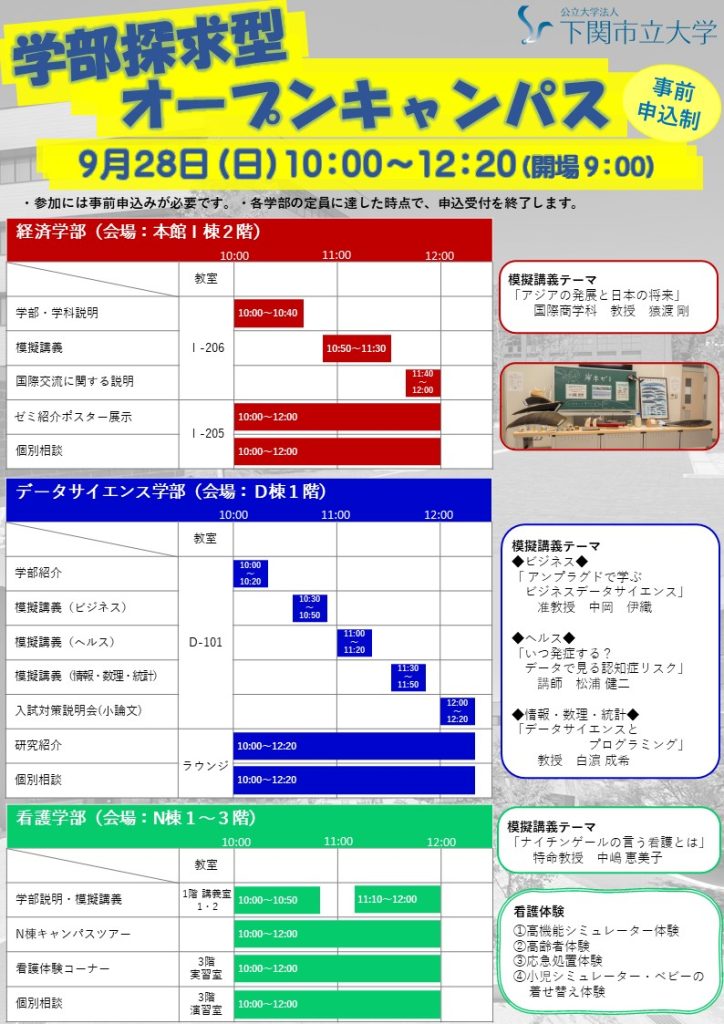 感謝您向9月28日(星期日)舉辦的學部探索型開放校園申請。