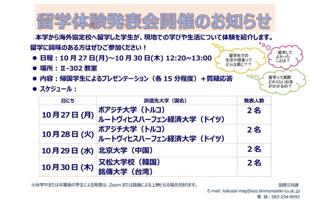 去年的派遣留學結束後回國的學生將舉辦“留學體驗發表會”。