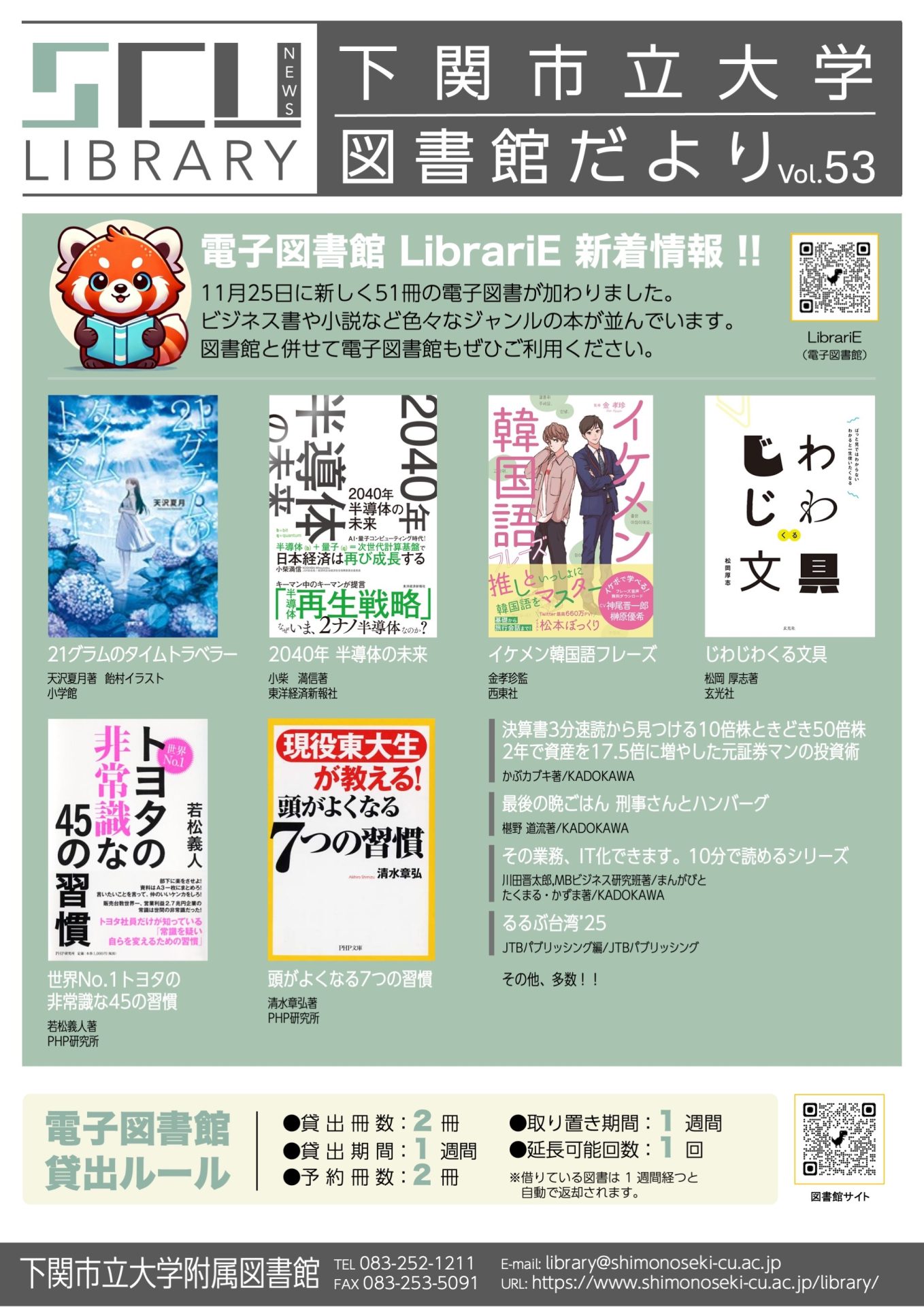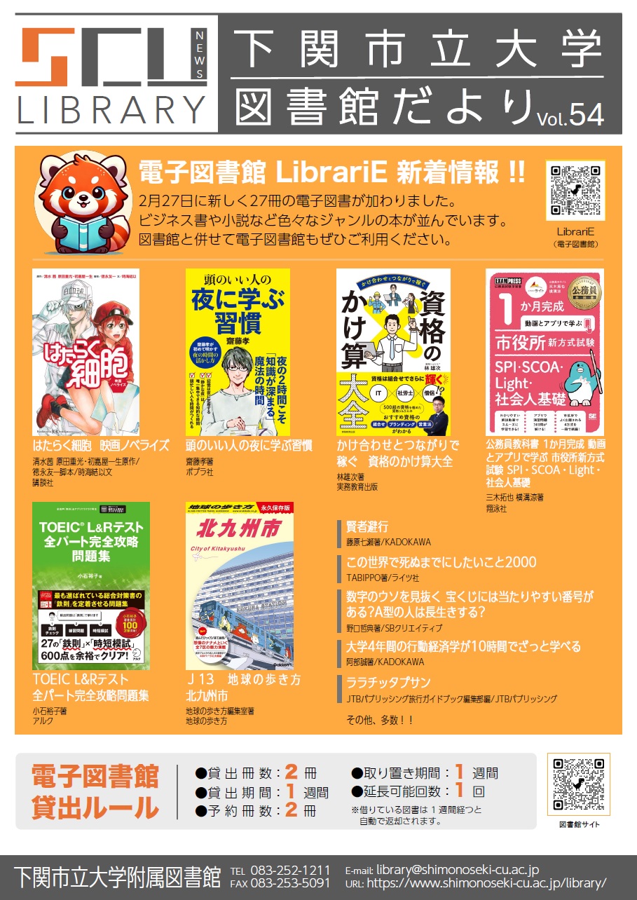 學內 2025.04.25 關於日經BP文章搜索服務的更新 學內 2025.03.28 (預告)關於合同中電子資源的外部利用 學內 2025.02.27 圖書館第54號 學內 2025.01.24 關於長期休假期間的長期貸款和閉館時間的變更 學外 2025.01.24 關於秋季學期定期考試的圖書館入館限制 共通 2024.12.27 年末年初閉館日的介紹 學內 2024.12.02 導入了引用文獻數據庫“Scopus” 學內 2024.11.25 圖書館第53號 共通 2024.08.28 【臨時休館】關於颱風10號接近的臨時休館 學內 2024.07.18 關於夏季休業期間的長期貸款 2 / 5«12345»