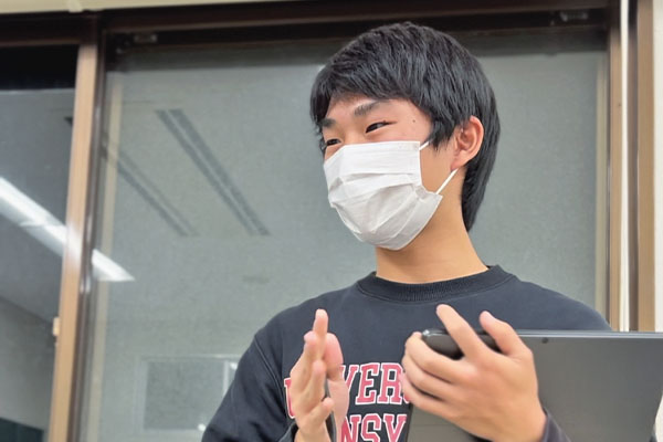 和高中不同,我認為大學生活中最重要的是自己管理時間,自己積極行動。市大學有很多溫柔的前輩,請隨時和我商量!
