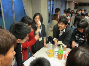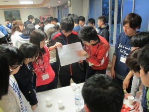 在晚飯後舉行的交流會上,新生熱心地聽取了高年級學生的學習方法、上課的樣子、社團活動等。