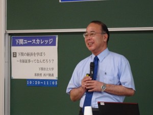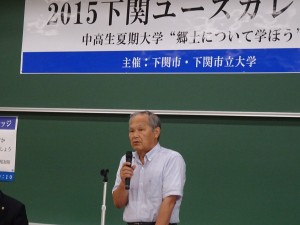 在2015年8月18日(週二)~20(週四)的日程中,下關市和下關市立大學共同舉辦的“2015下關青年高等學校初高中生夏季大學”鄉土學習”活動,很多中學生參加了此次活動。通過下述全9個講座的各種各樣的授課和實地參觀,為了更好地了解當地下關而舉辦。最後一天頒發了結業證書,得到了參加的初高中生的好評。