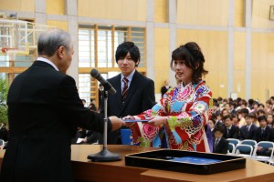 - 從校長領取學位記的國際商學系總代富田小圓