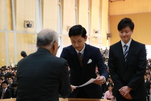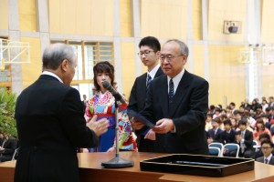 - 從校長接受學位記的大學院經濟學研究科總代山西敦先生