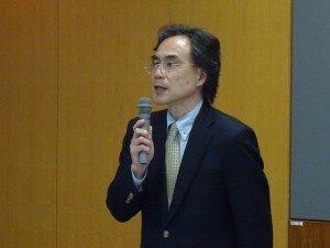 在下關市立大學附屬地域共創中心的難波利光中心長的開幕致辭之後,第一部由宮下量久準教授、內田晃教授、南博教授、木村健二原教授以及難波利光教授分別發表了研究成果報告。