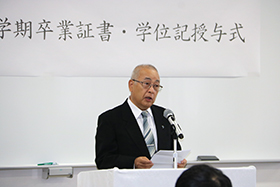 校長在致辭中說:“在大學學到的東西只不過是通過點上的一個評價,能否活用這一點取決於今後大家的心情和努力。在與老師和職員們的交流中得到的語言中,只要一個能成為心靈核心的語言就可以了,希望大家能銘記在心,從這所大學畢業。”如上所述。