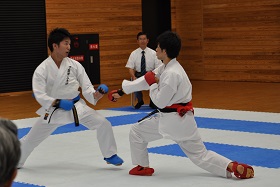 - 在個人組手交流戰中也有本校選手之間的對戰(左:梶山君,右:西松君)