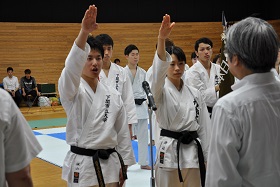 當天有6所大學參加,本校空手道部有3名男子參賽。另外,選手以外的部員也擔任了會場設置和進行等職務,全體人員團結一致運營了大會。