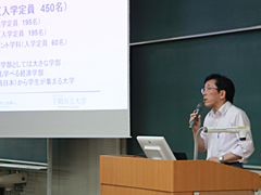 在上午10點開始的全體說明中,佐佐木入學考試委員長就本校的歷史和入學考試內容等進行了說明。模擬講義是公共管理系菅正史準教授的“思考‘集成’~東京一極集中的背景~”。在小論文對策講座上,加來入學考試副委員長解說了寫小論文的意圖和小論文的寫法等。