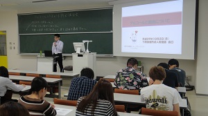 2017年10月2日(星期一)午休時,以“酒精和健康”為主題舉辦了酒精騷擾講習會。以下關保健所精神保健福祉諮詢員森口陽之為講師,社團·學生團體的代表者等86人參加了此次活動。