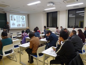 本校經濟學院的櫻木晉一教授將描繪江戶時代下關的繪畫、幕府末期拍攝的照片、西博爾德等外國人在江戶參府紀行等地寫下的下關的樣子重疊起來,就下關這個地方的繁榮情況進行了說明。有很多聽講者參加,從大家那裡得到了非常滿意的感想。