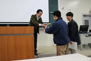 12月22日(星期日),在長濱研討會上參加了“第8屆長崎縣立大學佐世保校聯合研討會報告會”。10個研討會18個隊伍參加,成為了超過100人的大規模報告會。各隊伍25分鐘的報告,10分鐘的質疑,因為是比較長時間的報告,所以有必要設法不讓聽眾感到厭倦。長濱研討會以“著眼於人與狗的關係史-Liminality-”為題,報告了日英的比較、社會中狗存在方式的變化。提問也有超過預定時間進行的場景,是一個活躍的報告會。對等評論的結果是,長濱研討會以最高得分獲得了最優秀報告獎,長崎縣立大學的綱辰幸地區創造學部院長表彰了我們。