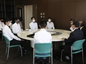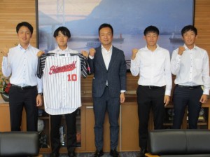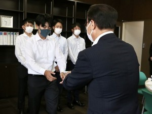 您自己在學生時代也有過準硬式棒球的經驗,從現在也非常喜歡棒球的前田市長那裡,收到了本校準硬式棒球部期待在全國大會上掀起“下關旋風”,向下關市傳遞活力的鼓勵。