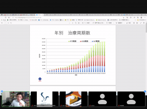 講座是使用Zoom線上進行的。聽講生們一邊看事先分發的資料、講義中顯示的圖表等,一邊熱心地聽著。另外,聽講者各自陳述意見和感想,與講師交換意見,成為了非常有成果的講座。
