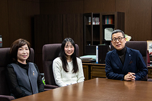 從左邊開始,吳老師、國際商學系4年阿部雅美、韓校長