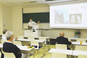 這次是秋季學期最初的公開講座,經濟學院的藤井美男特命教授在中世紀歐洲的歷史、地理、產品等背景下,以學習商品如何流通、經濟發展的演講形式進行了講座。