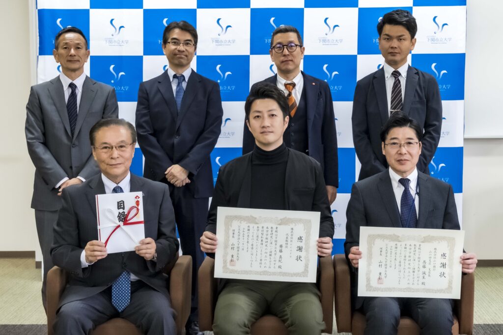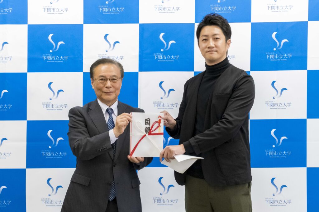 “捐贈型私人募債”是指企業在發行私人募債時,受託的山口銀行根據發行額向該企業指定的地方公共團體、學校等進行捐贈。這次,在本校附近經營網路郵購業的株式會社Recora成為捐贈型私人募債發行企業,希望能對下關市立大學的學術研究的提高有所幫助,因此將本校指定為捐贈地。