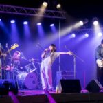 - 輕音樂部沐浴在聚光燈下熱情演繹。