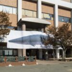 - 原尺寸大的鯨魚垂幕。在附近一看,它的大小令人驚訝!