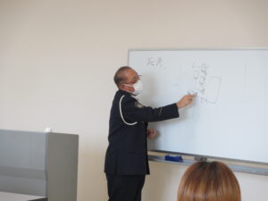 在講話中,說明了物理的死角和心理的死角,說了目視和預測駕駛的重要性,以及有時間和心靈的充裕行動也是很重要的。另外,對於學生來說,這是一個非常有意義的時間,比如遭遇煽動駕駛時的應對、酒後駕車的危險性、騎自行車時的戴安全帽等。