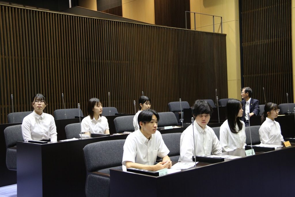接著,支援者的學生們訪問了下關市議會,向香川議長、安岡副議長報告了活動成果。