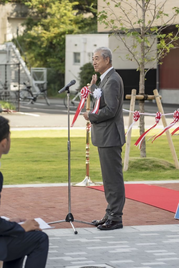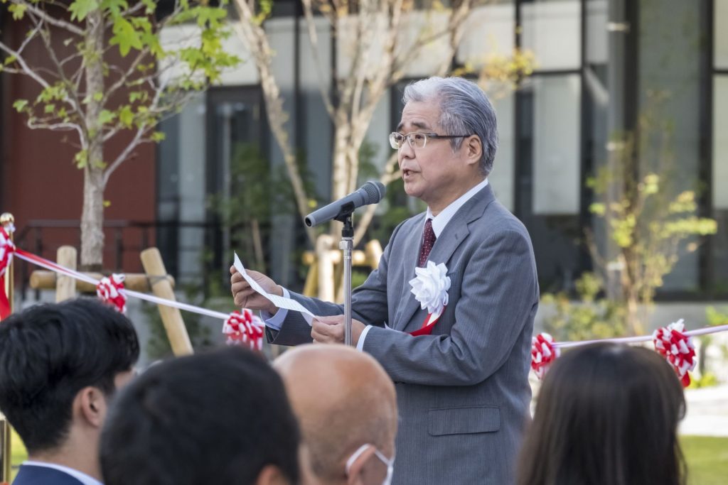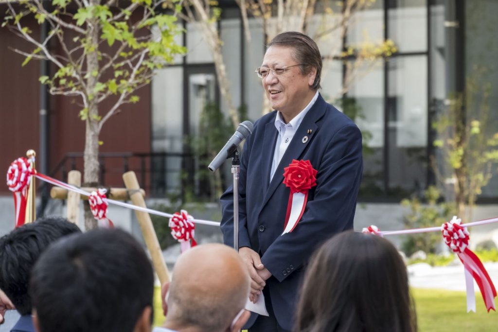 儀式上,主辦方前田下關市長、三木理事長、高橋下關市立大學生活協同組合理事長致辭後,代表來賓向安岡下關市議會副議長致賀詞。