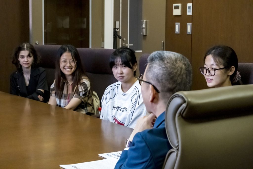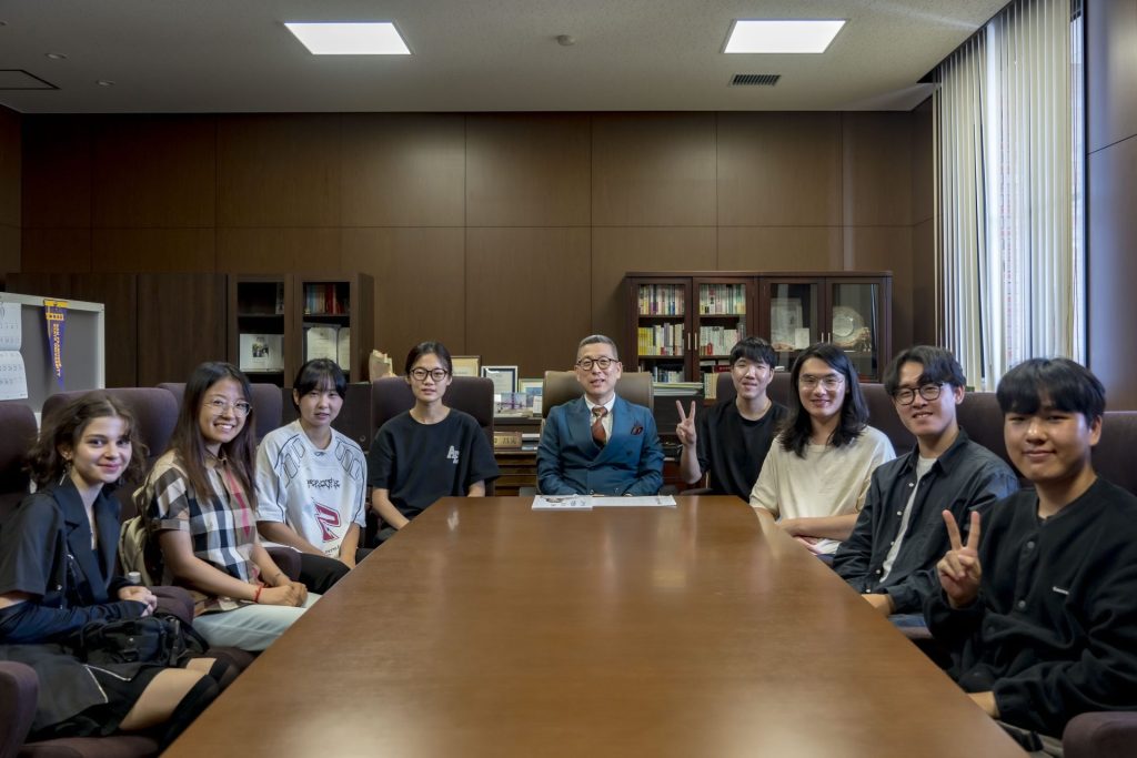 10月10日(星期四),今年在本校學習的外國留學生們訪問了校長室。來自中國的4名,來自南韓的3名,來自德國的1名,共計8名。